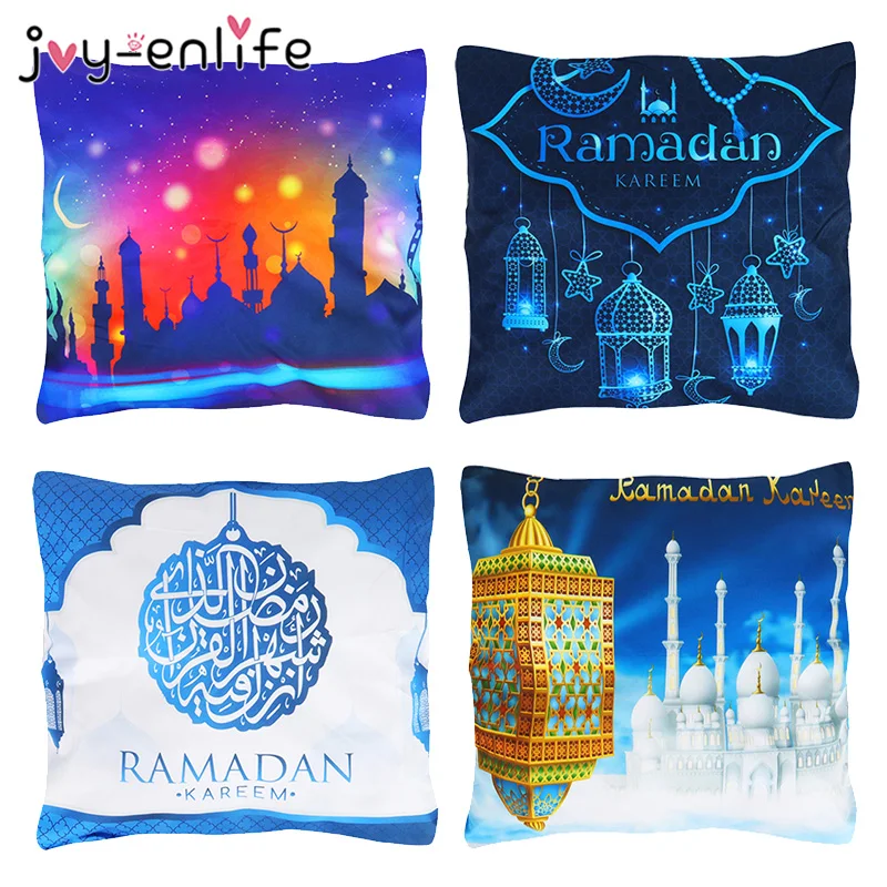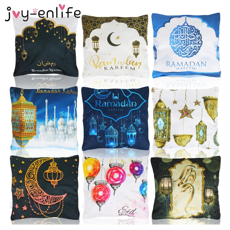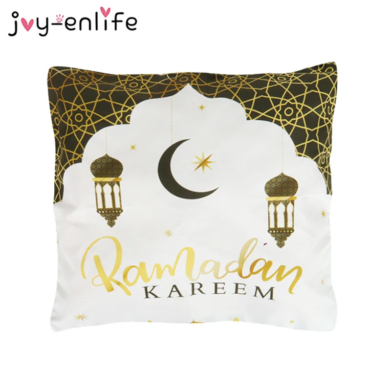 DISCOUNT 45x45cm Happy Eid Mubarak Pillowcase Ramadan Decor Islamic Muslim Party Decor Islam Ramadan Kareem Eid Al Adha Supplies