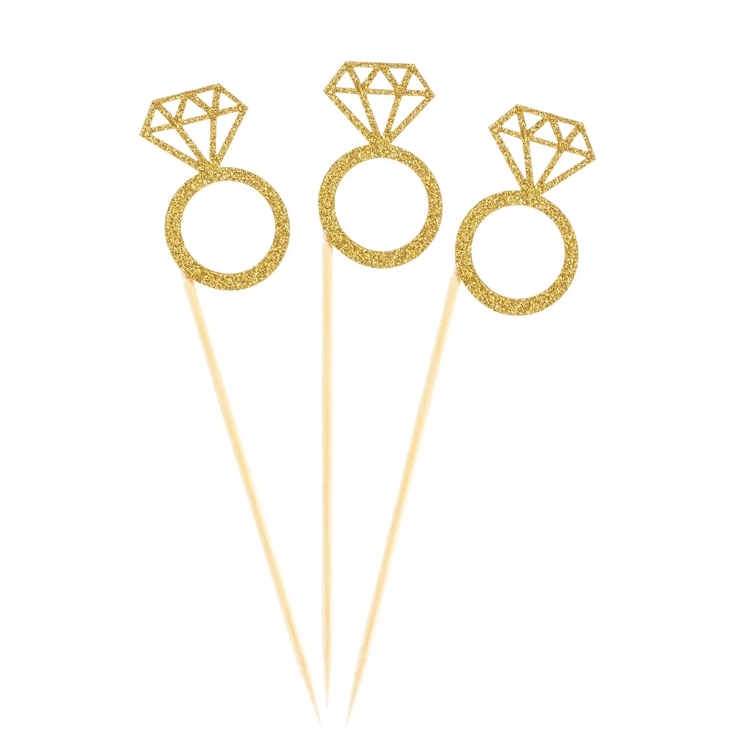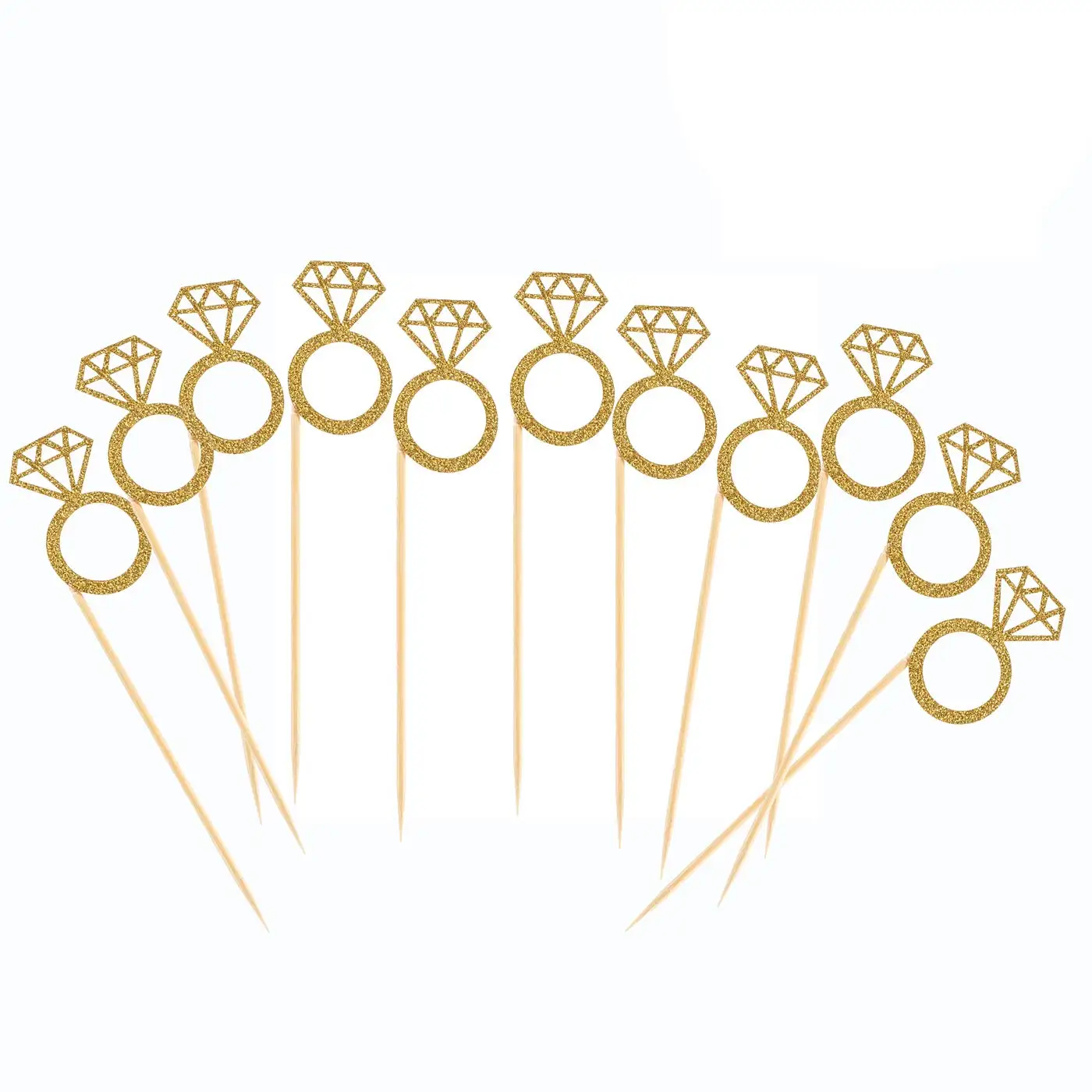 HOT SALE 50Pcs Cupcake Toppers Gold Glitter Mini Diamond Ring Cakes Toppers for Marriage Engagement Anniversary Valentines Cake Decor