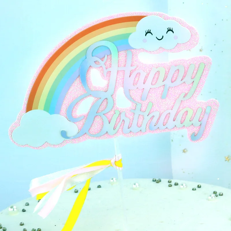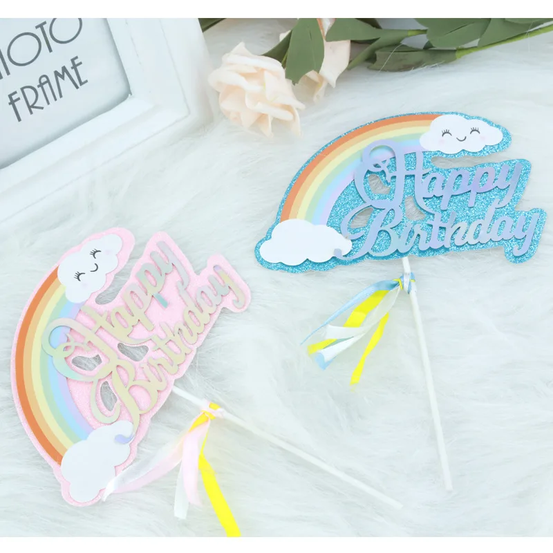 HOT SALE Beautiful Rainbow Clouds Birthday party Cake Topper Dessert holiday cake paper flag Music wedding Birthday cake card decoration
