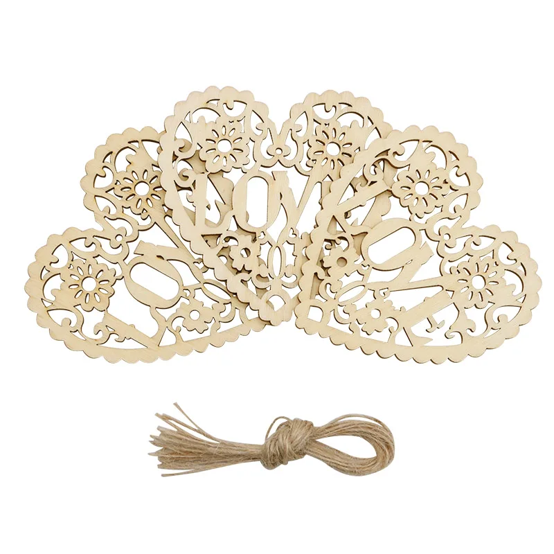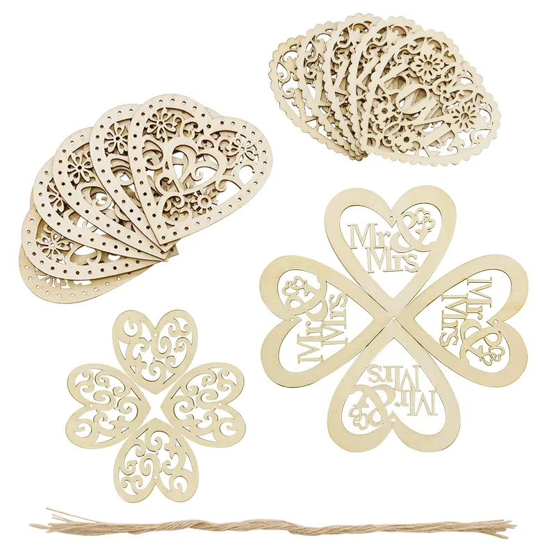 Addition Information of 10pcs Hollow Love Heart Wooden Pendant Ornamet DIY Wedding Party Hanging Decoration Home Decorative Mr Mrs Wooden Heart Craft