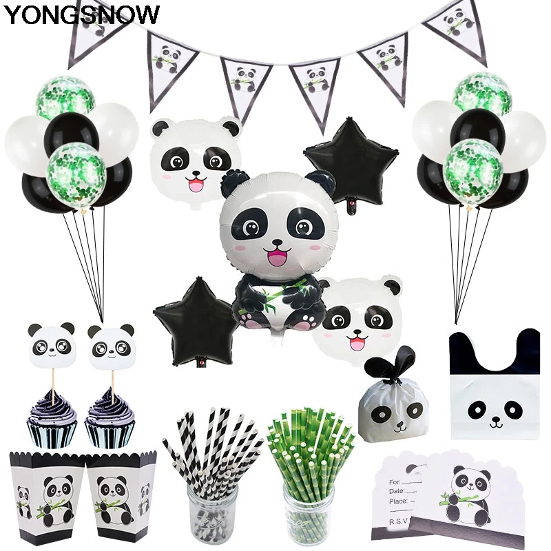 Cheap Price Animal Panda Theme Party Decorations Supplies Children Birthday Party Baby Shower Disposable Tableware Set Balloon Banner Straws with Free Worldwide Shipping!