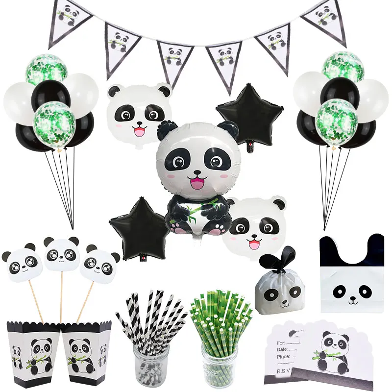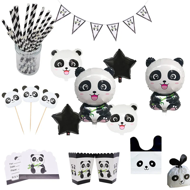 LIMITED Animal Panda Theme Party Decorations Supplies Children Birthday Party Baby Shower Disposable Tableware Set Balloon Banner Straws