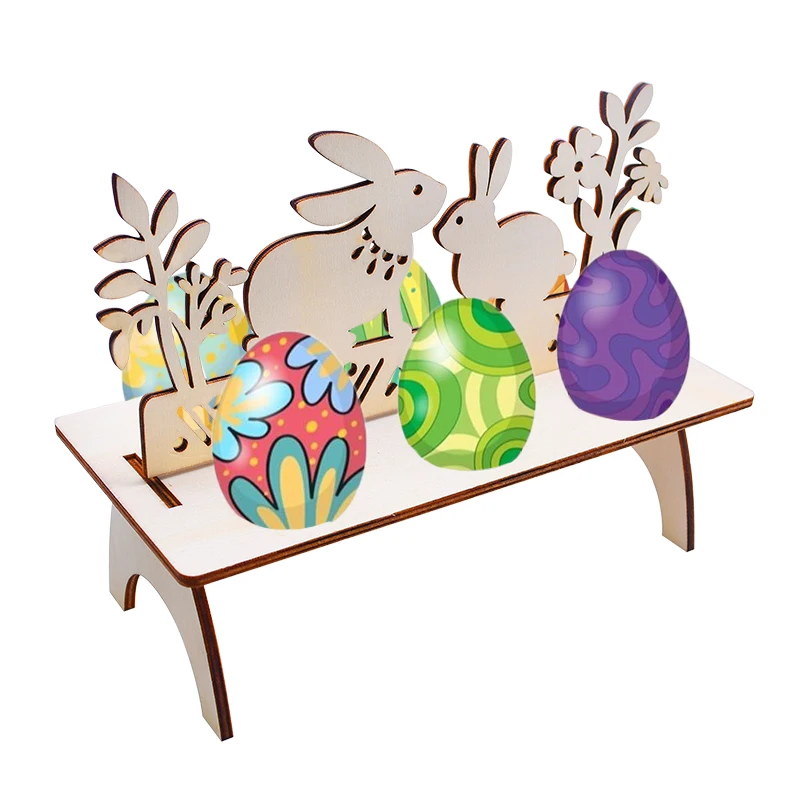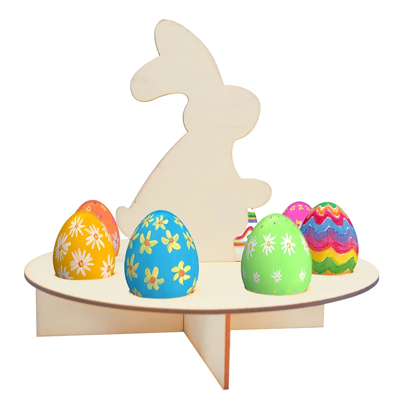 Addition Information of 1Pc Easter Rabbit Bunny Chick Pattern Wooden Egg Rock Happy Easter Egg Holder Stand Easter Party Decor Wood Craft Home Ornament
