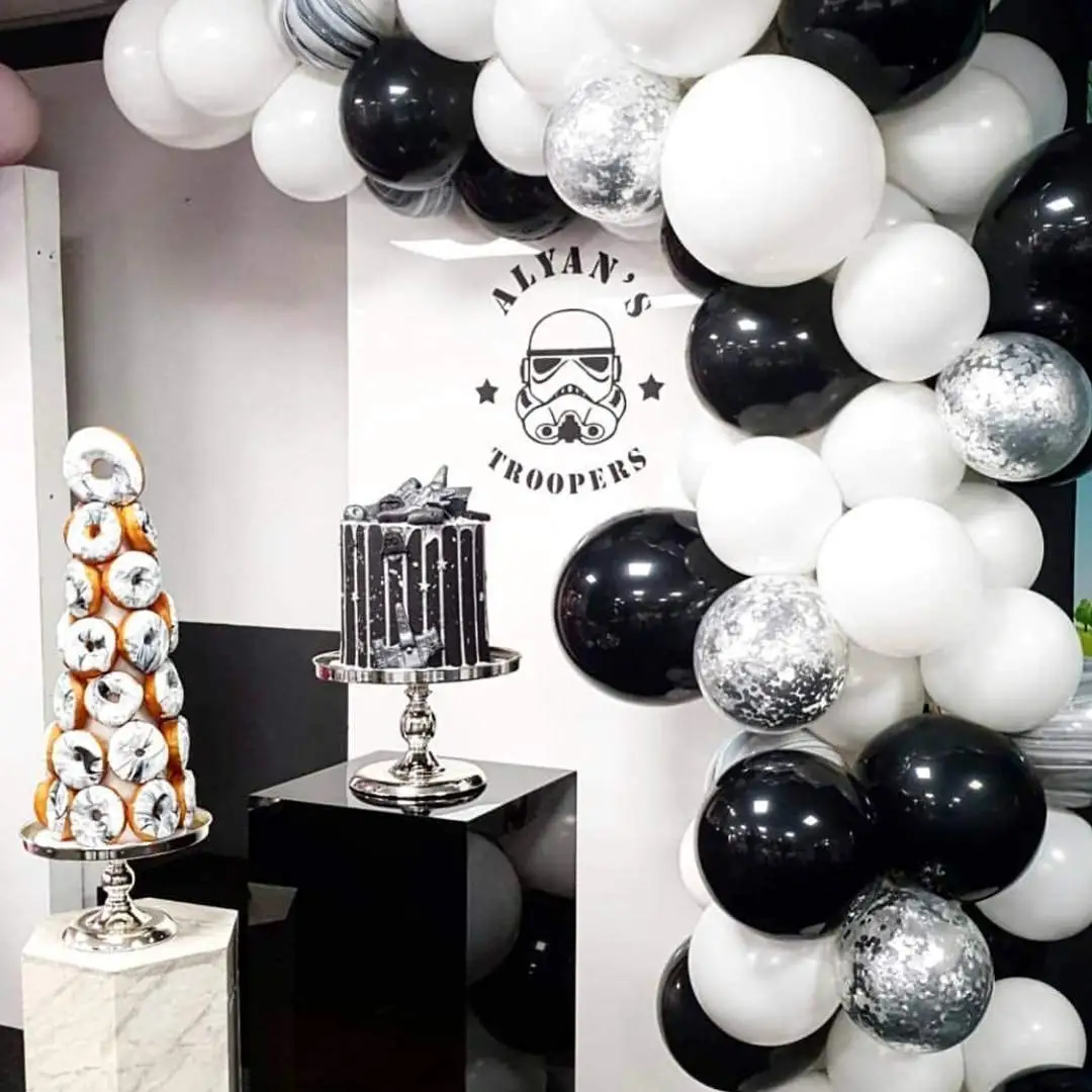 Addition Information of metable 120pcs Black Agate Marble balloons Silver Confetti White Balloons garland kit for Wedding Baby Shower Graduation party