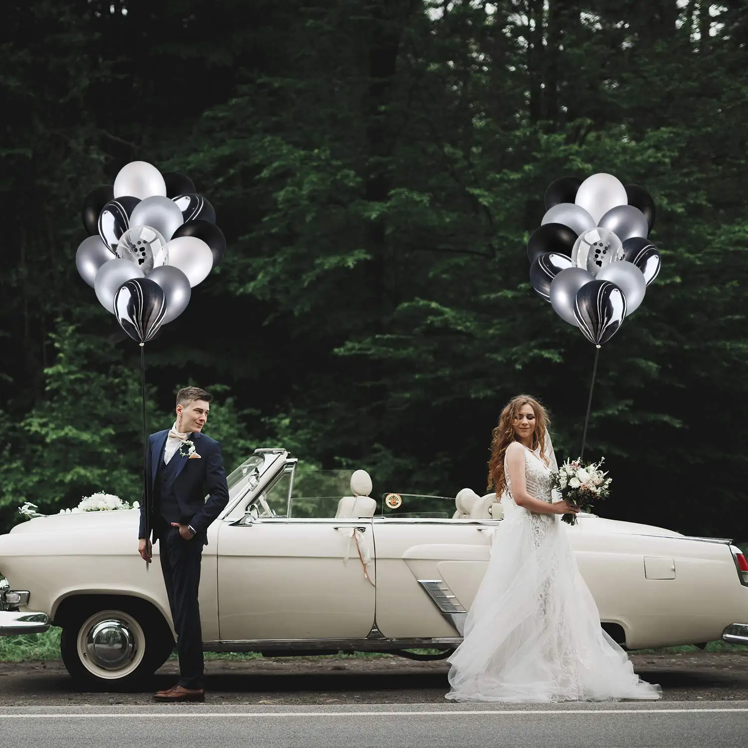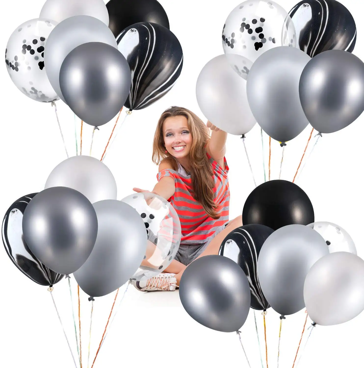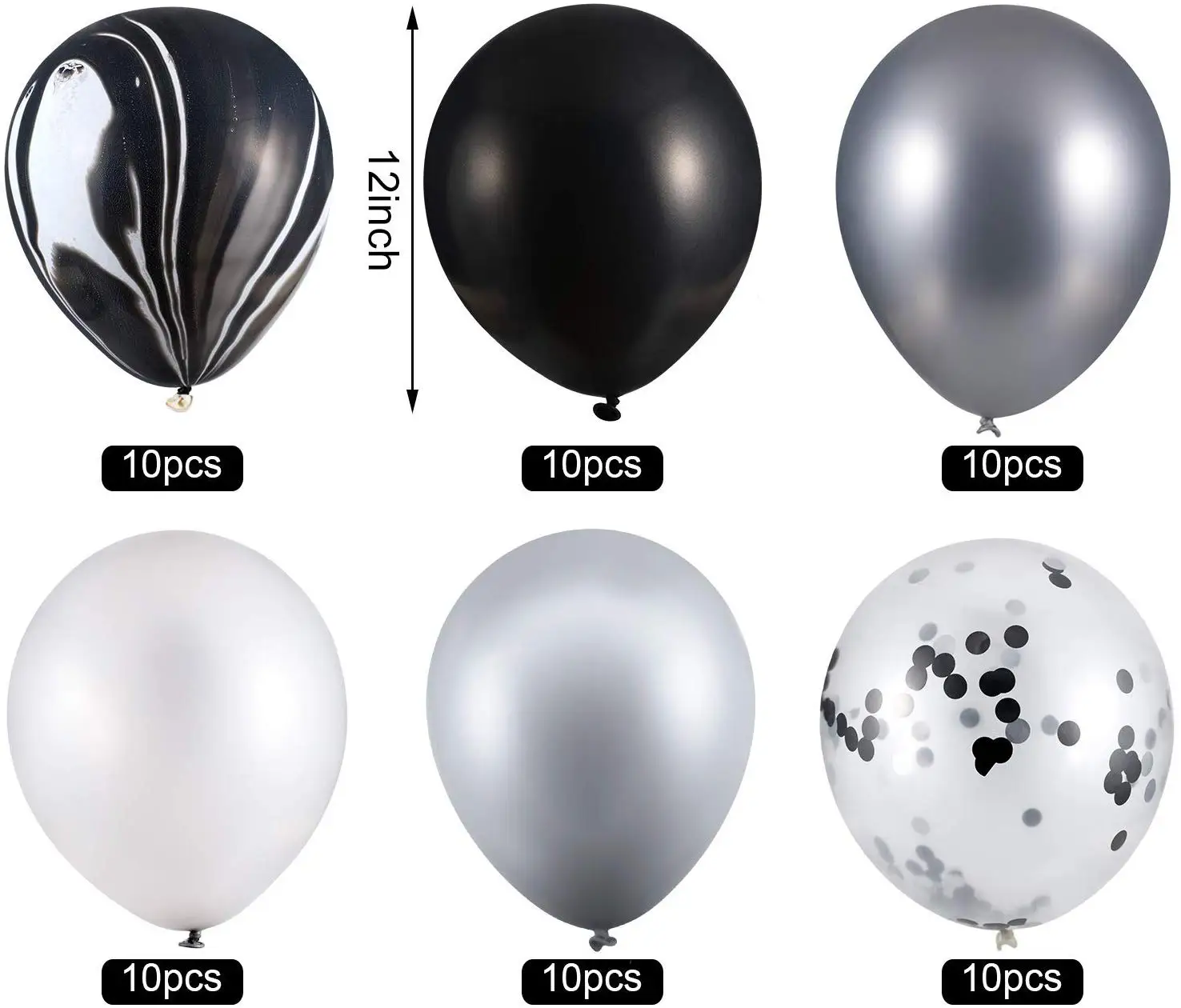SELL PRODUCT METABLE 60PCS 12Inch Agate Latex Confetti Balloons Black White Silver Balloons for Baby Shower Wedding Office Birthday Party