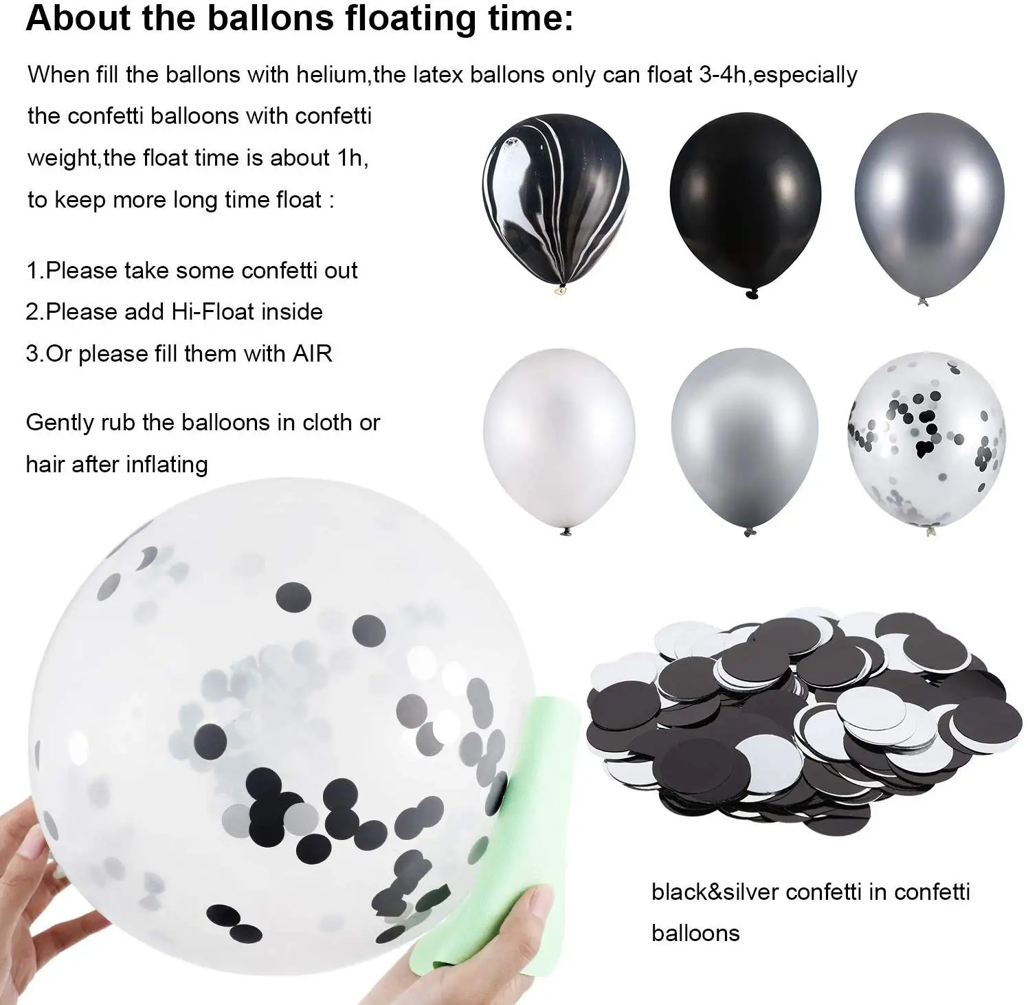 Addition Information of METABLE 60PCS 12Inch Agate Latex Confetti Balloons Black White Silver Balloons for Baby Shower Wedding Office Birthday Party