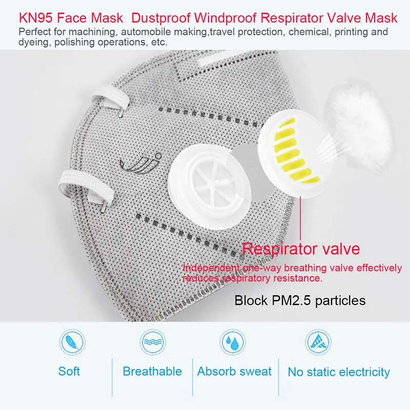 Addition Information of 10pcs/5PCS Healforce N95 Adult Folding Nonwoven Valved Dust Mask PM 2.5 Respirator Mouth Mask With Valve Gauze Haza Mask
