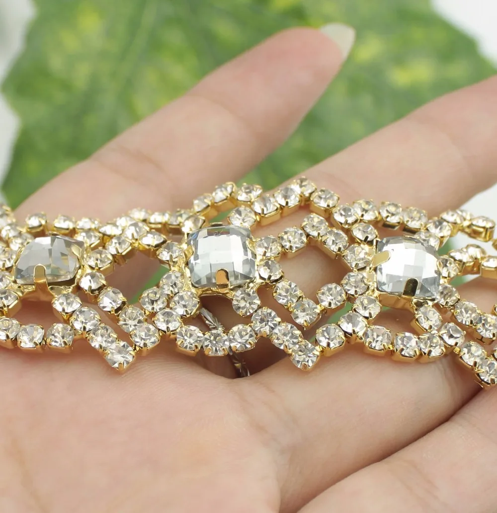 Addition Information of 10Yards Gold Silver Plated Rhinestone Crystal Chain Sew On Trim Wedding Cake Decoration