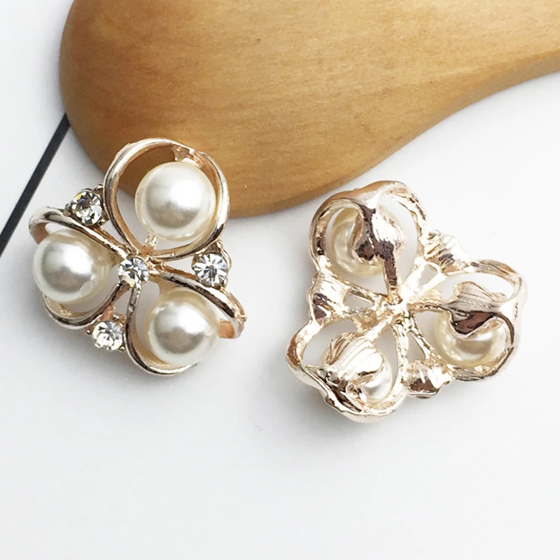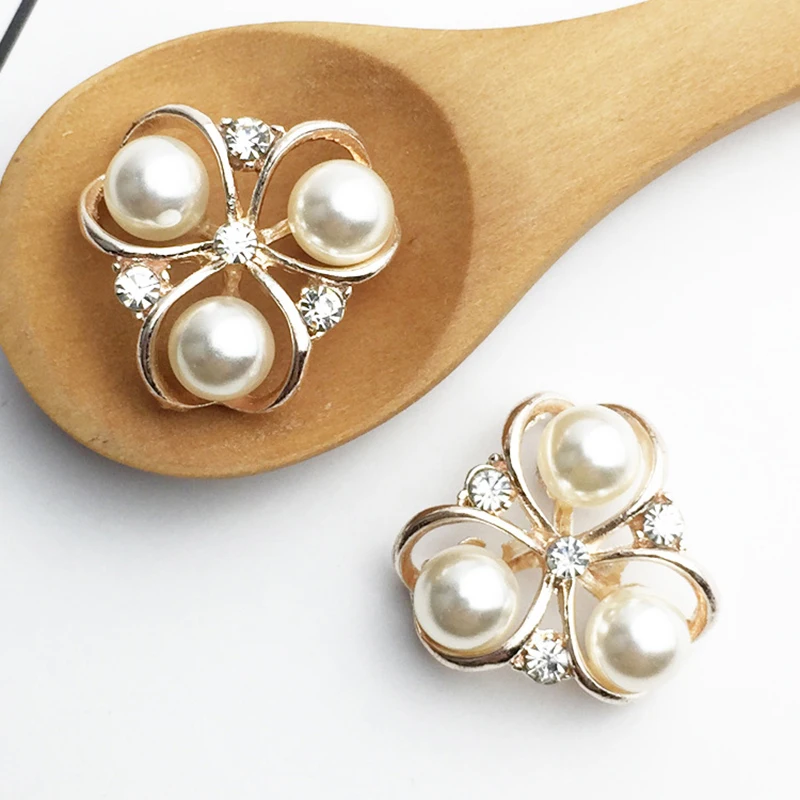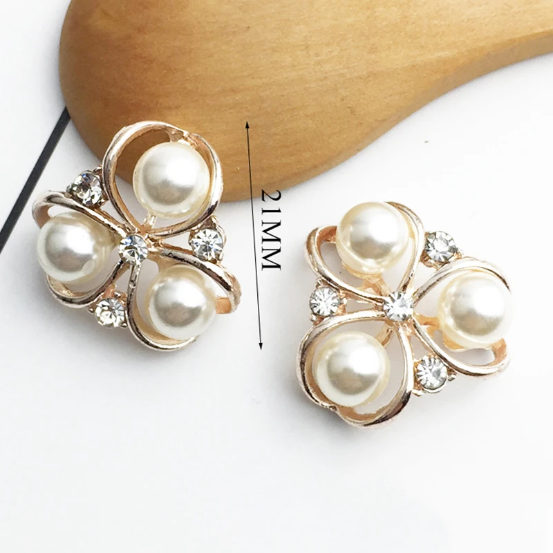FLASH DEALS 10pcs/lot 21MM Flower Pearl Rhinestone Buttons Craft for Clothes Alloy Metal Sewing Button for Hair Accessories Decorative