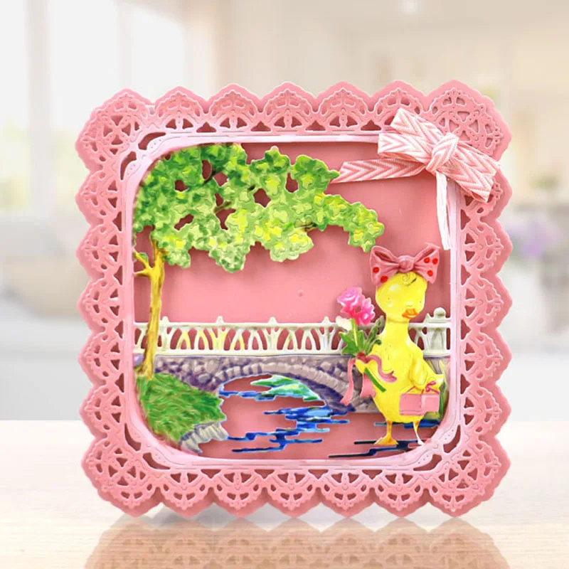 HOT SALE Flower Heart Lace Edge Frame Metal Cutting Dies Stencils For DIY Scrapbooking Decoration Embossing Supplier Handcraft Die Cut