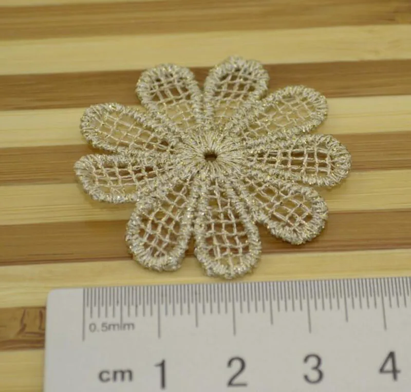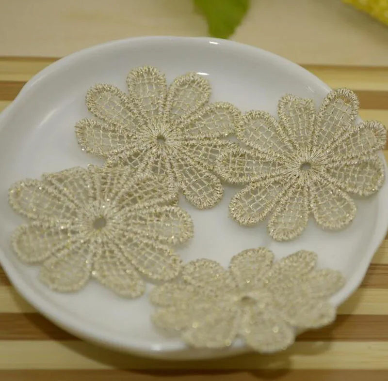 Addition Information of 5Pieces Sew On Embroidered Costume Appliqued Flowers Patches Gold Trims 3.8cm Decorative Braids Clothes Crafts