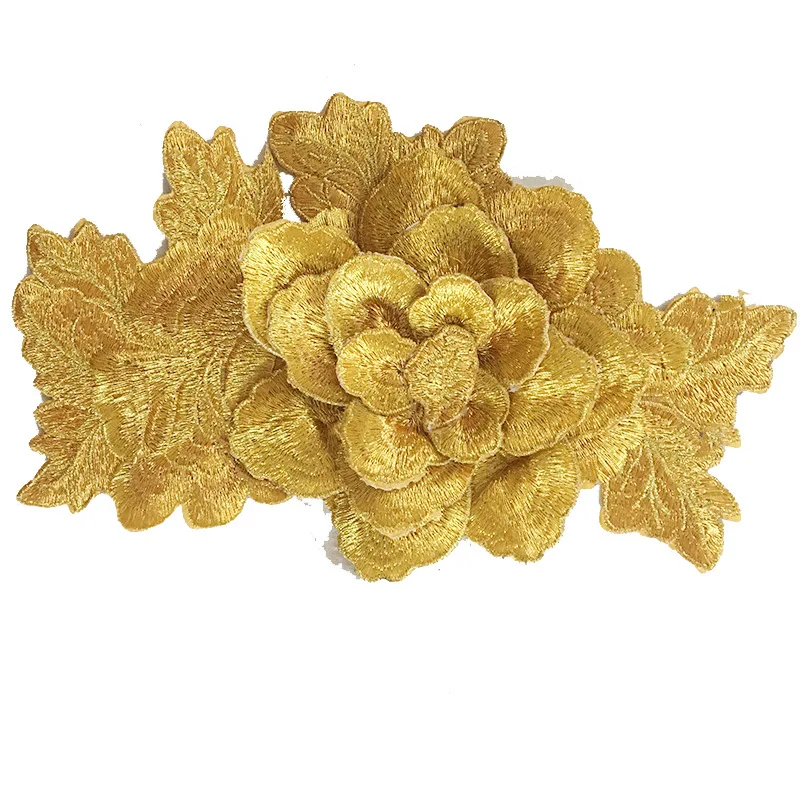 Addition Information of 5pcs Computer embroidery 3D three-dimensional honeysuckle dress clothing accessories gold silver golden lace applique