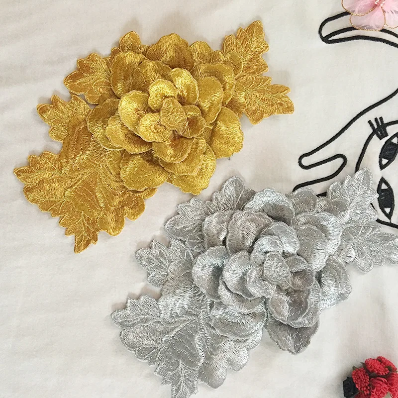 Special Offer 5pcs Computer embroidery 3D three-dimensional honeysuckle dress clothing accessories gold silver golden lace applique with FREE Shipping Worldwide!
